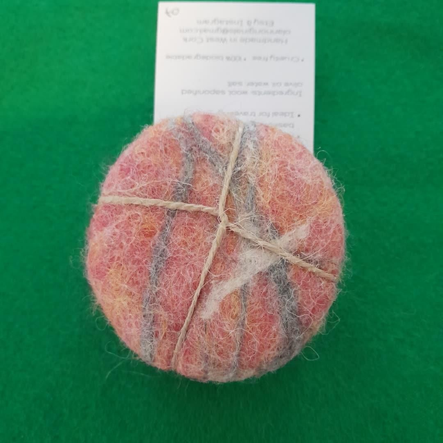 Rinse felted soap bar under warm water and rub vigorously with hands to lather. As the soap gradually dissolves, so the felt will shrink until all that is left is a small felted wool pad. It’s then time to use your imagination as to how to give this piece of felt another life, maybe as a cleaning pad, upcycled into jewellery or added to the compost, it’s up to you!